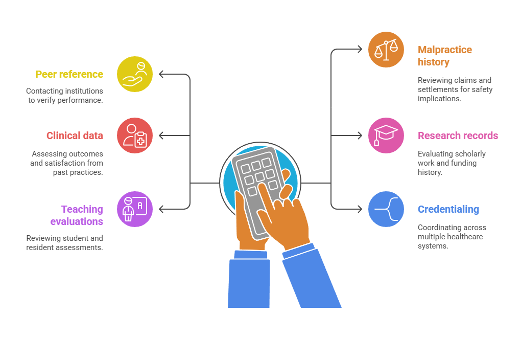 - Peer reference verification: Direct contact with previous institutions to verify clinical performance, teaching effectiveness, and professional conduct
