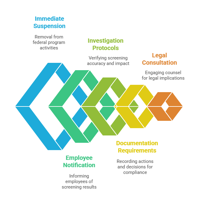 - Immediate response procedures for positive screening results protect organizations from continued exposure to excluded individuals.