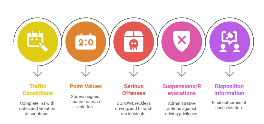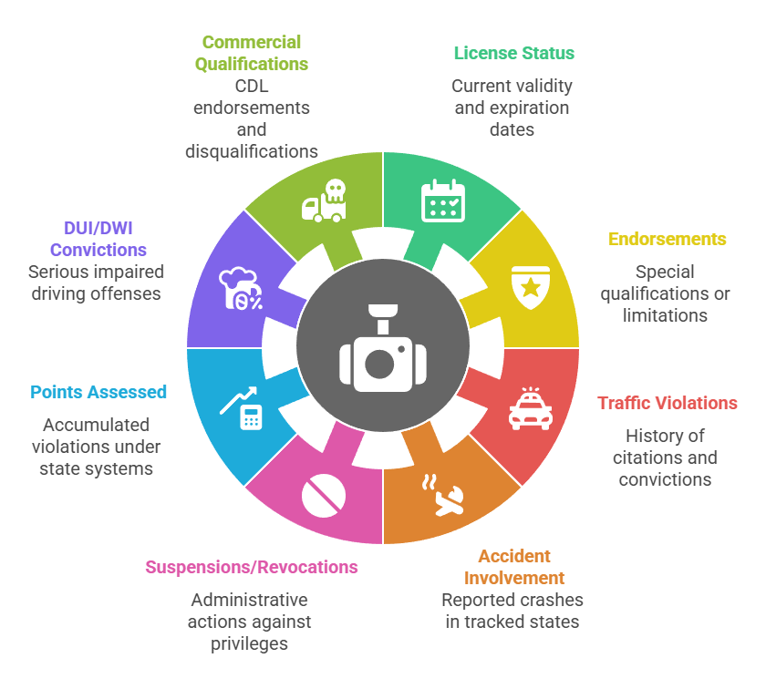 Some states include additional information like organ donor status, out-of-state violations reported through interstate compacts, and commercial driver disqualifications. The comprehensiveness varies by state, which is why reviewing records from all states where an applicant held licenses during the lookback period provides the most complete picture.