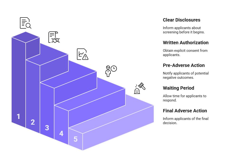 Rushed adverse action processesBuild required waiting periods into hiring schedules through advance timeline planning