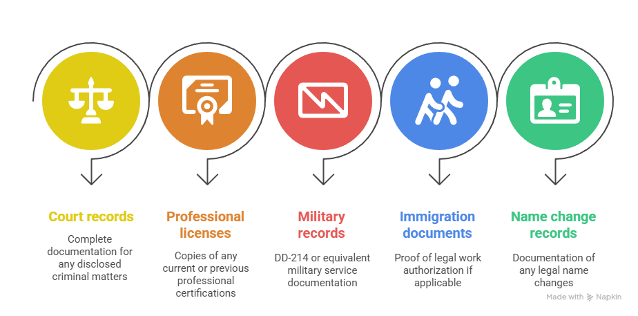 - Court records: Complete documentation for any disclosed criminal matters