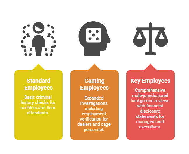 Position classification directly determines the scope, depth, and timeline of background screening. Regulatory frameworks establish tiered investigation requirements corresponding to employee access to gaming assets, regulatory responsibilities, and operational authority. Understanding these classification distinctions enables HR professionals to implement appropriate screening protocols while maintaining compliance with Fair Credit Reporting Act requirements and EEOC guidance.