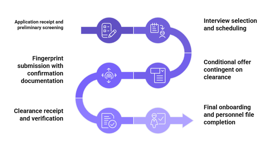 For positions known to turn over regularly, maintaining continuous recruitment pipelines with fingerprint submissions occurring in off-peak months reduces time pressure when vacancies arise. This approach requires careful communication about the conditional nature of offers and potential for rescission if clearances do not arrive or reveal disqualifying information.