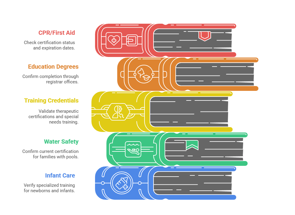 - Infant care certifications: Verify specialized training for positions involving newborns and young infants