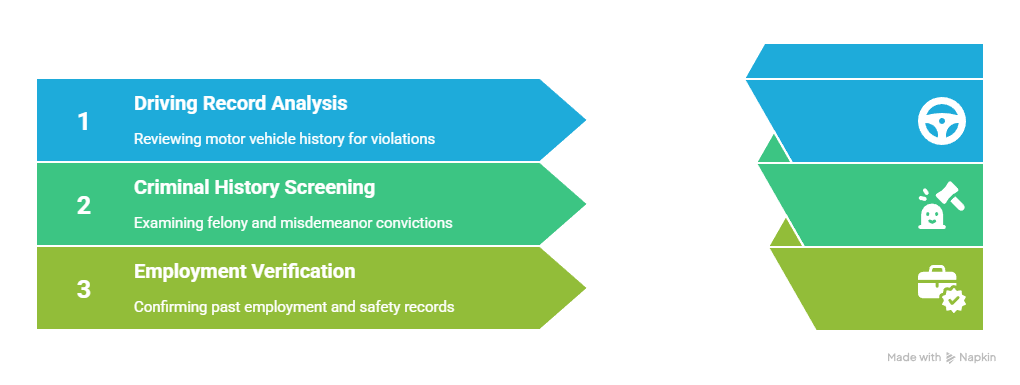 Employment history verification ensures candidates possess legitimate commercial driving experience while identifying potential performance or safety concerns from previous positions. Additionally, this process involves contacting former employers, verifying employment dates, and confirming job responsibilities and performance evaluations.