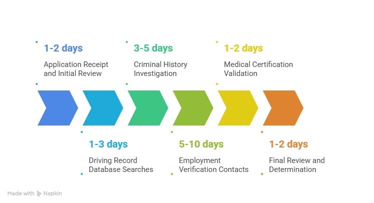Ohio commercial transportation background checks follow standardized procedures designed to ensure thoroughness while maintaining reasonable processing timelines. Consequently, the process begins with application submission and proceeds through multiple verification stages before final determination.