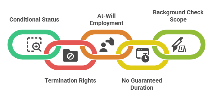 No Guaranteed Duration: Confirmation that conditional employment creates no guarantee of permanent employment