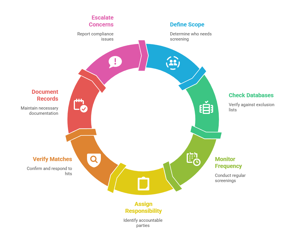 Conduct periodic assessments of your exclusion screening program's effectiveness. Schedule these typically annually or when significant operational changes occur. Assessment should evaluate whether current procedures remain appropriate for your organization's size and complexity. Determine whether screening is being conducted consistently according to policy. Verify whether documentation is adequate for audit purposes.