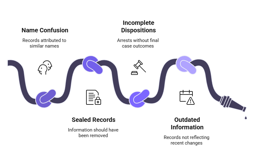- Sealed or expunged records: Information that should have been removed still appearing