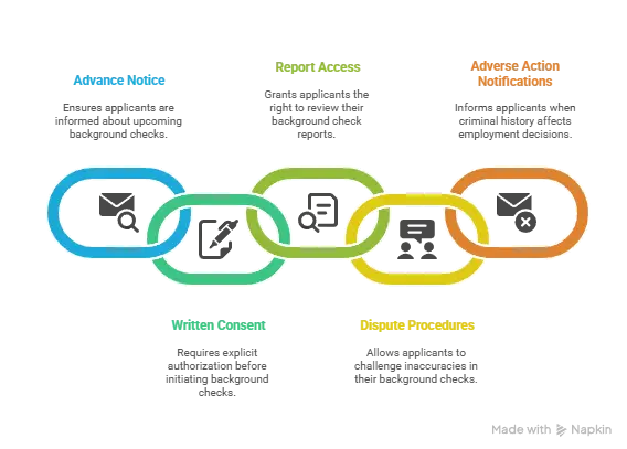 - Adverse Action Notifications: Right to receive specific information when criminal history affects employment decisions