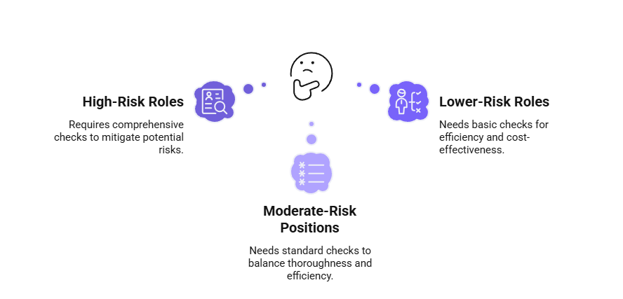 - Lower-risk roles: Basic identity verification and limited criminal history screening