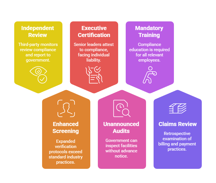 Direct financial penalties represent just the beginning of enforcement consequences. Beyond monetary settlements, enforcement actions frequently result in Corporate Integrity Agreements imposing five-year monitoring requirements. These CIAs mandate compliance program enhancements, independent review obligations, and reporting requirements costing millions annually throughout their duration.
