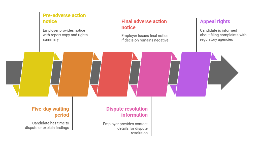 - Final adverse action notice: Required if employer proceeds with negative decision