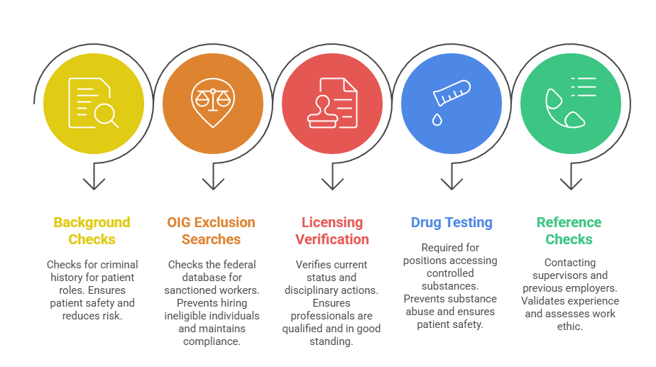 - Reference checks: Clinical supervisors and previous healthcare employers