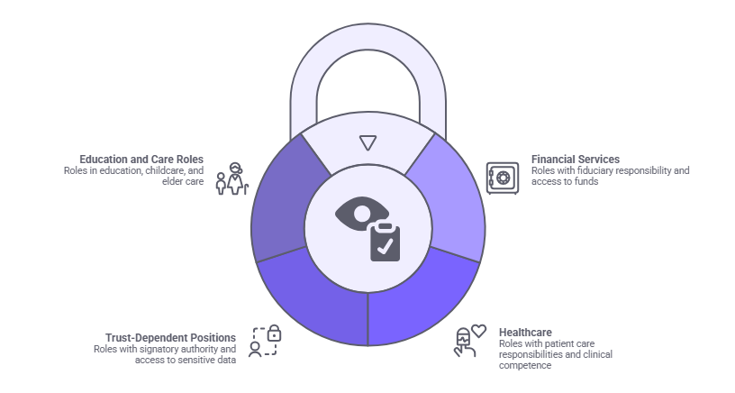 - Education and care roles: Education roles, childcare positions, and elder care responsibilities typically require validation. This validation should address behavior patterns, boundary maintenance, and prior performance in trust-dependent contexts.