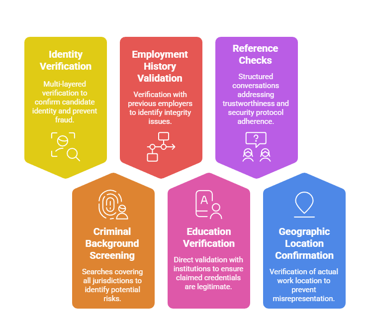 Understanding these distinct remote work security risks helps organizations design effective screening protocols. These protocols address actual threat vectors rather than simply adapting office-based procedures. The remote context creates unique security challenges requiring tailored verification approaches.
