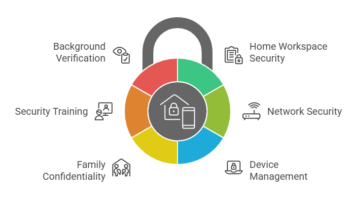 - Family Confidentiality Training: Documentation that household members understand confidentiality obligations, restrictions on discussing work, and prohibitions on accessing work devices.