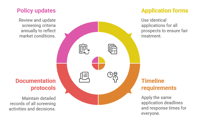 Successful rental screening requires consistent policies applied fairly across all applicants. Written screening criteria should specify minimum credit scores, income requirements, and acceptable criminal history parameters. These standards help ensure consistent decision-making while providing clear expectations for potential tenants.