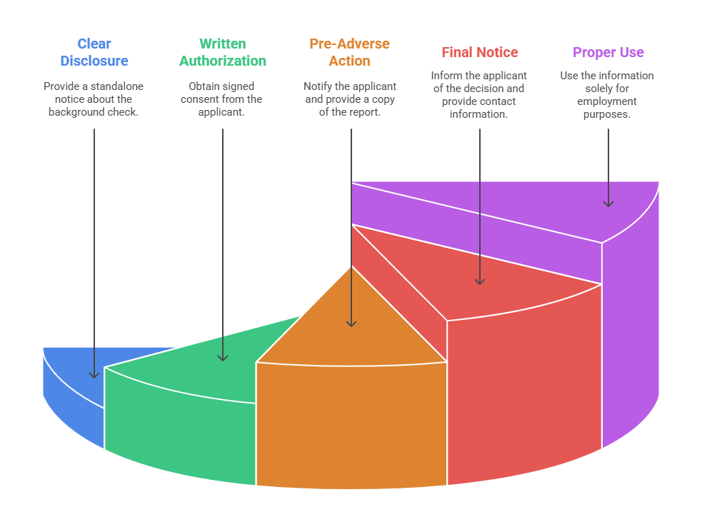 • Clear Written Disclosure: Provide standalone notice that a background check will be conducted, separate from your employment application