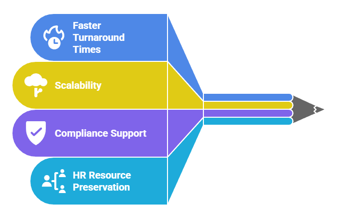 - Third-party screening services provide specialized infrastructure to handle volume surges while maintaining FCRA compliance, offering faster results through optimized court access and database networks that internal HR teams typically cannot replicate during compressed hiring windows.