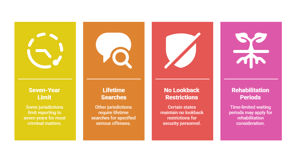 - Some jurisdictions impose seven-year reporting limits for most criminal matters