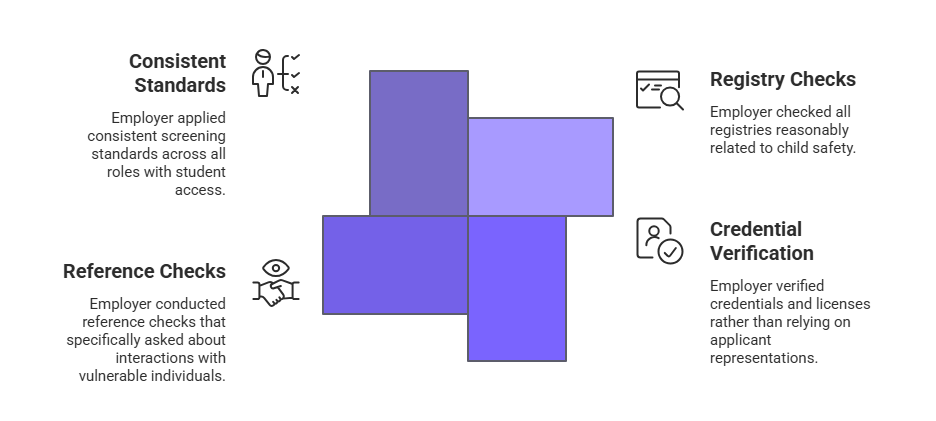 | Negligent hiring case law | Evaluates screening adequacy based on foreseeability and vulnerability | Civil liability and damages |