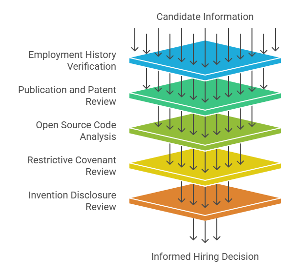 Technical and legal due diligence for IP-sensitive hires includes several critical steps: