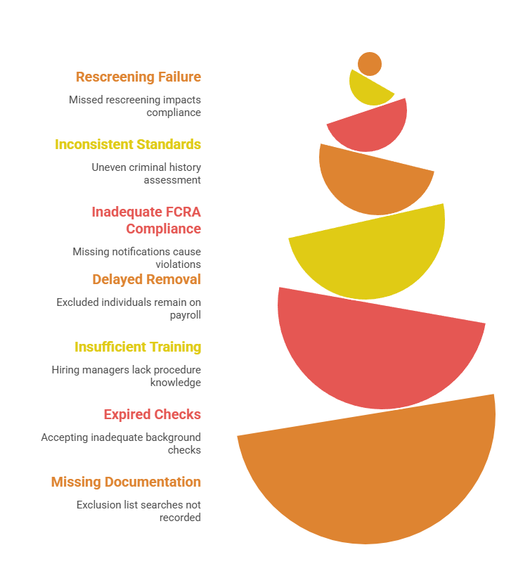 - Failing to conduct required rescreening at specified intervals for long-term care employees