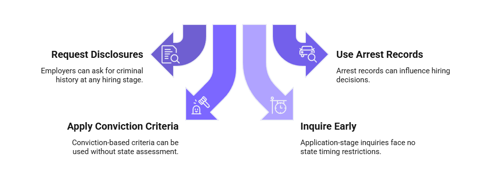 - Employers may request criminal history disclosures at any hiring stage