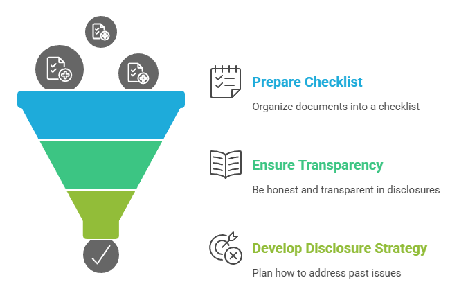 Effective disclosure includes acknowledging responsibility for past mistakes, explaining circumstances that led to problems without making excuses, detailing concrete steps taken to address issues, and demonstrating current stability through employment, education, or community involvement. Supporting documentation like program completion certificates, character references, and employment records strengthens the disclosure narrative and shows genuine rehabilitation efforts.