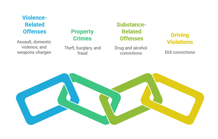 - Violence-Related Offenses: Assault, domestic violence, and weapons charges raise legitimate concerns in environments where workers operate dangerous equipment