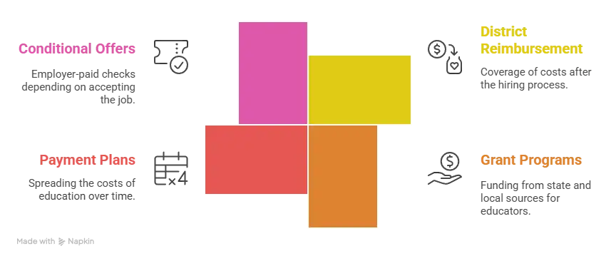 - District reimbursement programs provide full or partial cost coverage for background check expenses after successful hiring and completion of probationary periods.