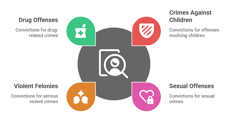 • Certain drug-related offenses within defined lookback periods