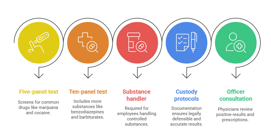 The screening panel should align with position requirements and federal obligations. Positions involving controlled substance manufacturing or handling typically require more comprehensive screening. All drug testing must comply with proper chain-of-custody procedures and use certified laboratories to ensure defensible results.