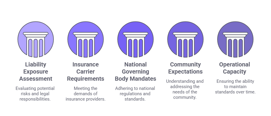 National governing body standards apply to organizations affiliated with sport-specific federations or membership associations. USA Swimming, Little League Baseball, and similar entities impose screening requirements on affiliated local programs that typically exceed minimum state legal standards.
