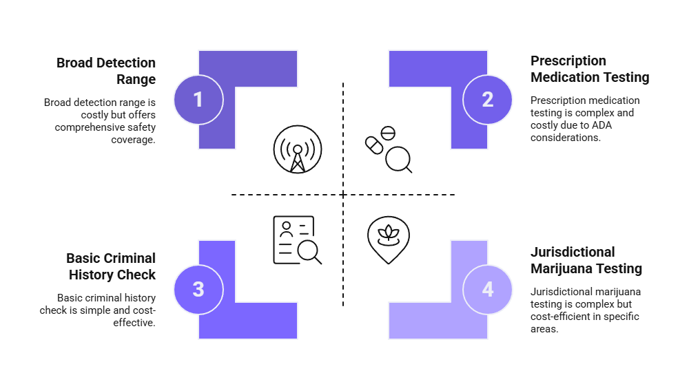 • Scope trade-offs: Broader detection range may suit organizations with specific safety concerns but introduces complexity regarding prescription medication use
