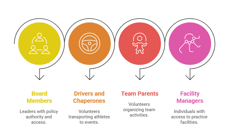 - Team Parents and Coordinators: Volunteers organizing team activities or managing communications involving child contact.