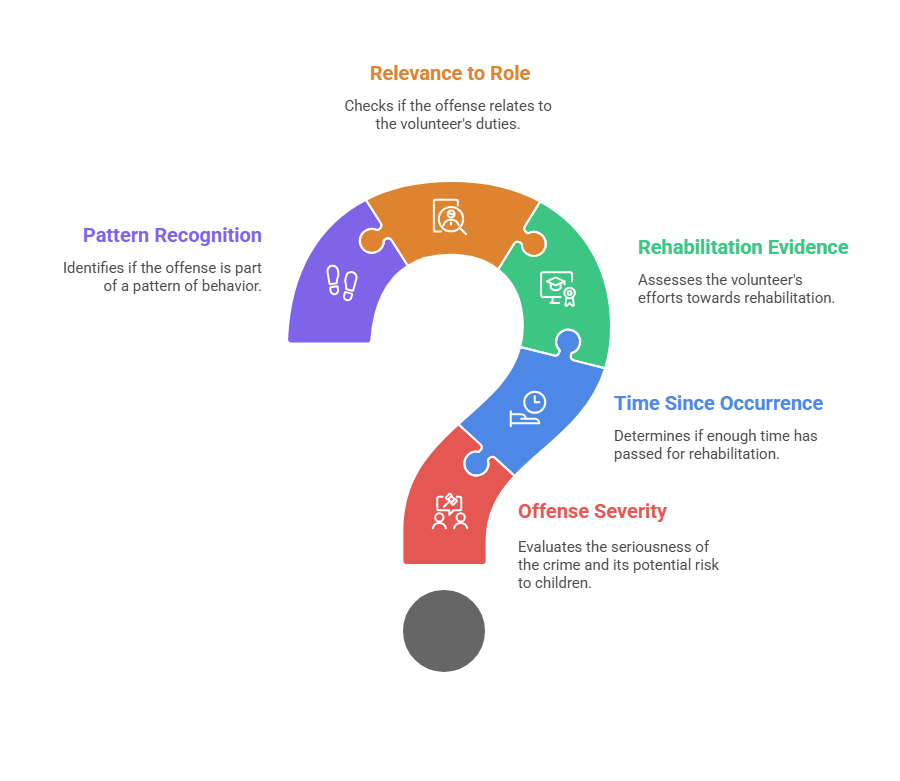 - Relevance to Volunteer Role: Does the offense relate to duties or child interaction aspects of the position being sought.
