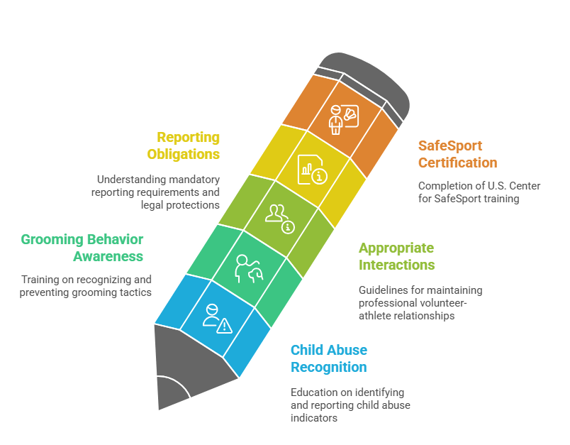 - Appropriate Interactions: Clear guidelines for professional volunteer-athlete relationships including touch policies, communication boundaries, private meeting protocols, and navigating situations requiring individual attention.